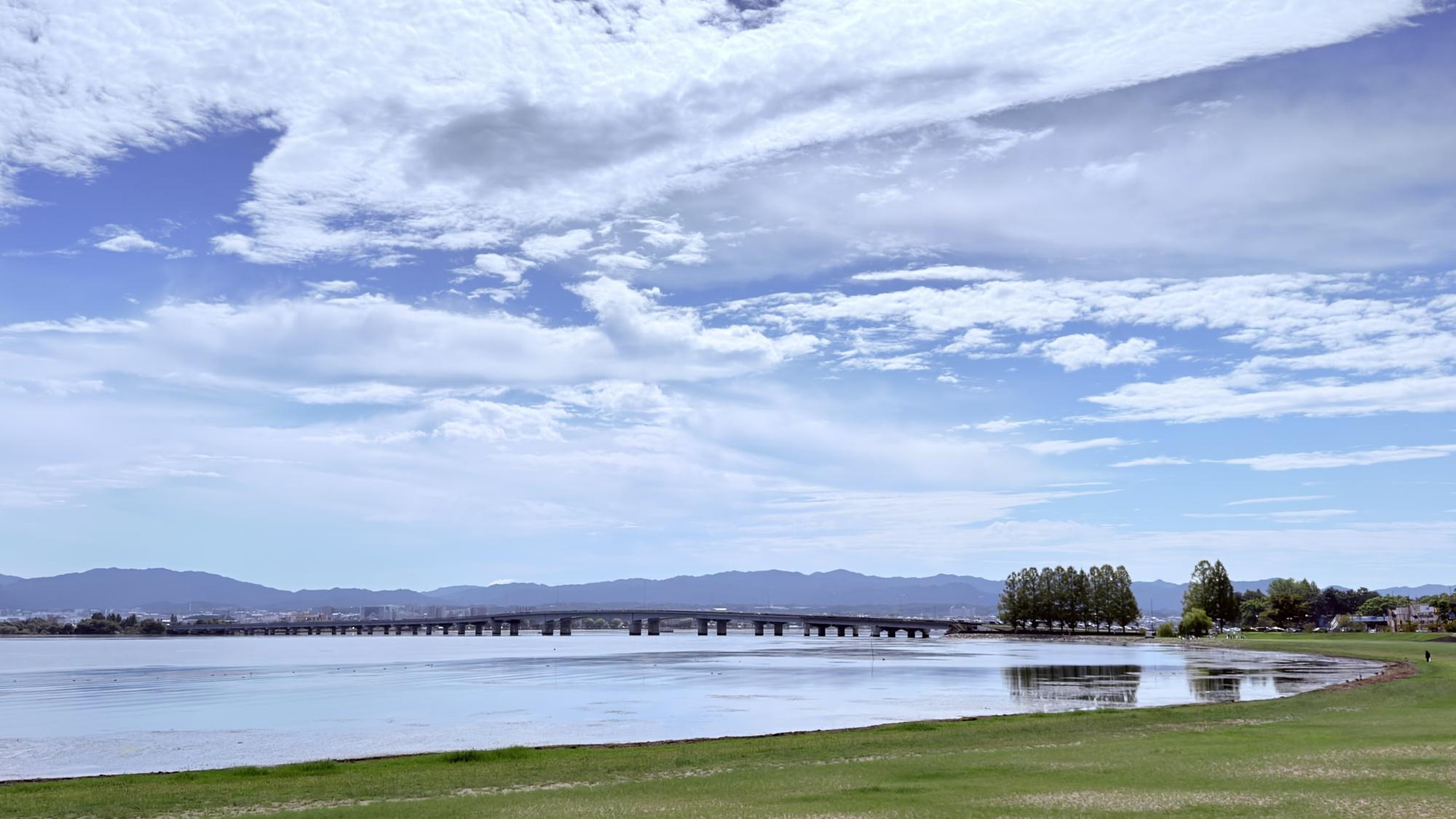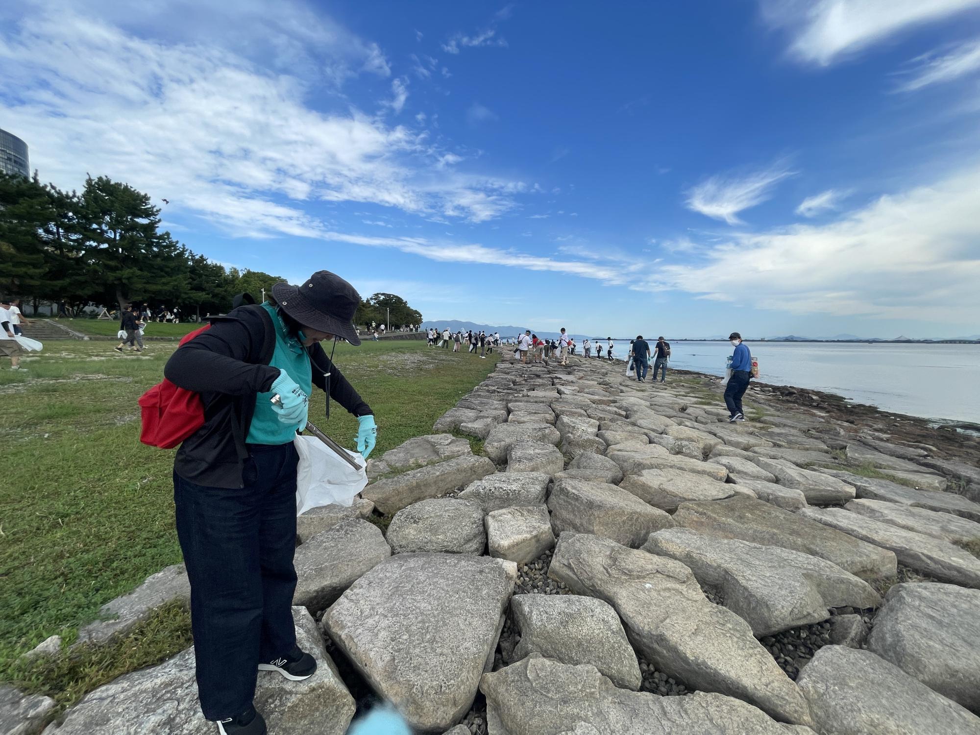 とても良い天気で、琵琶湖を含めた景色にとても癒されました。これから先の未来にもキレイな琵琶湖を残していかないとと感じました。一人で黙々とゴミ拾いをするのも良いですが、今回のように普段話さないような歴史の話をしながら清掃ウォークするのもとてもよかったです。