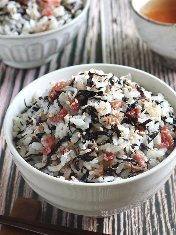 ふんわり香る梅干しの酸味に、しらすの旨み、ひじきの食感。そこに鰹節やごまの風味が加わって、とにかく箸が止まらない🥢