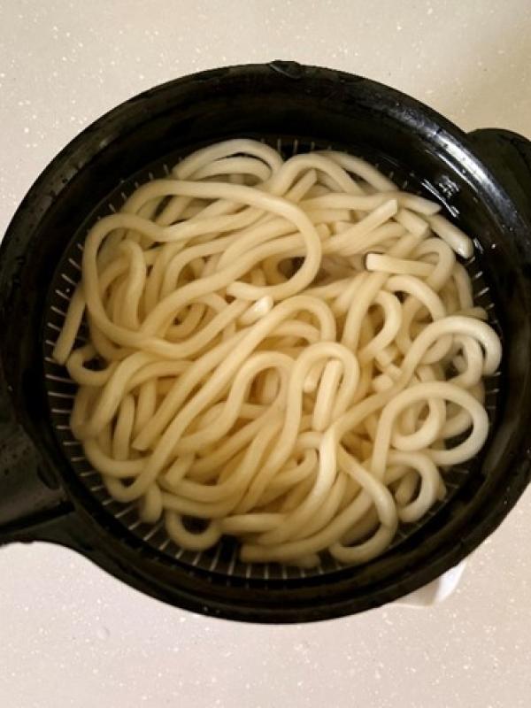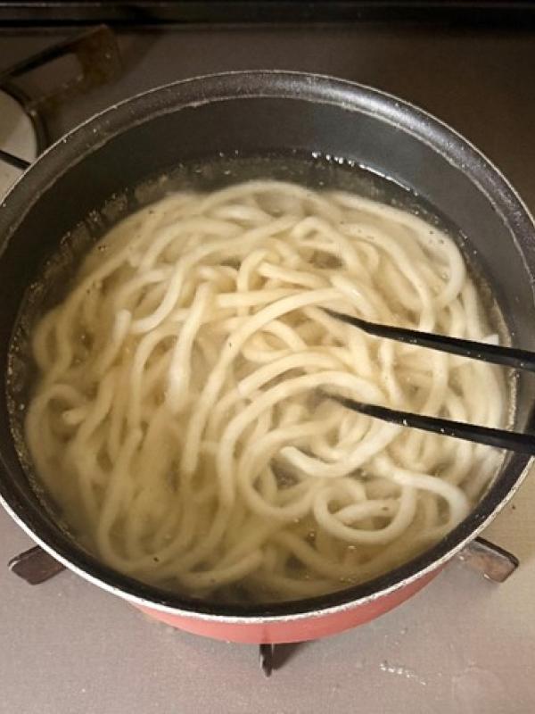 鍋にお湯をたっぷり沸かし、冷凍讃岐うどんを入れて1〜2分ゆでる。