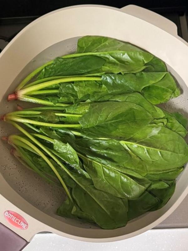 ほうれん草は茹ですぎると食感が無くなるので、サッと茹でる程度にしてください。