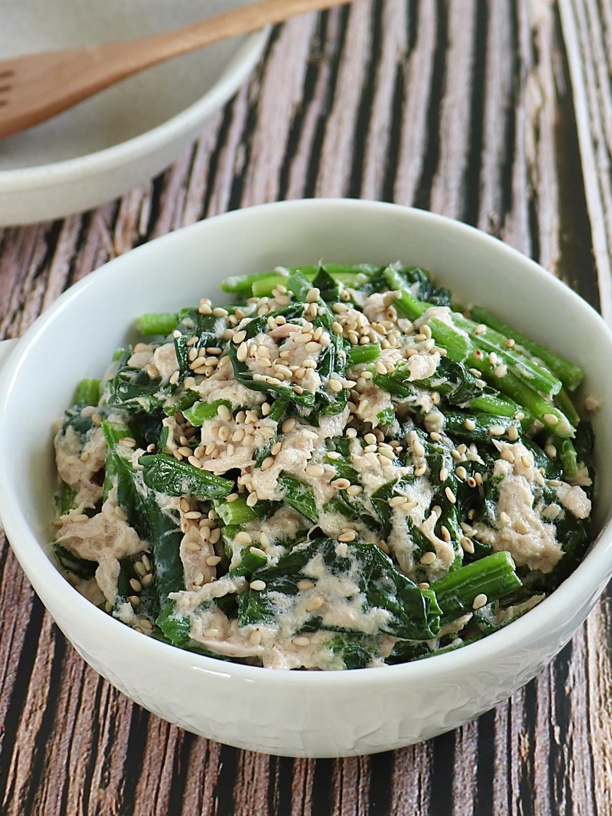 ほうれん草をサッと茹でて、シーチキンと調味料を和えるだけ🥬