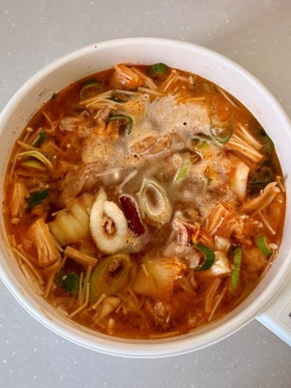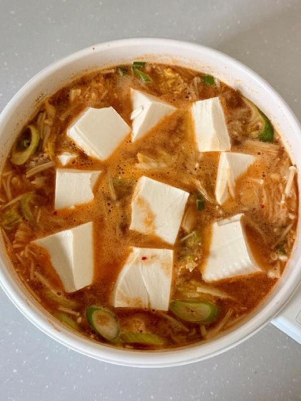 スープにするとキムチの辛さがまろやかに🥣最後まで飲み干しやすい味なので、辛いのが得意じゃない方にも◎