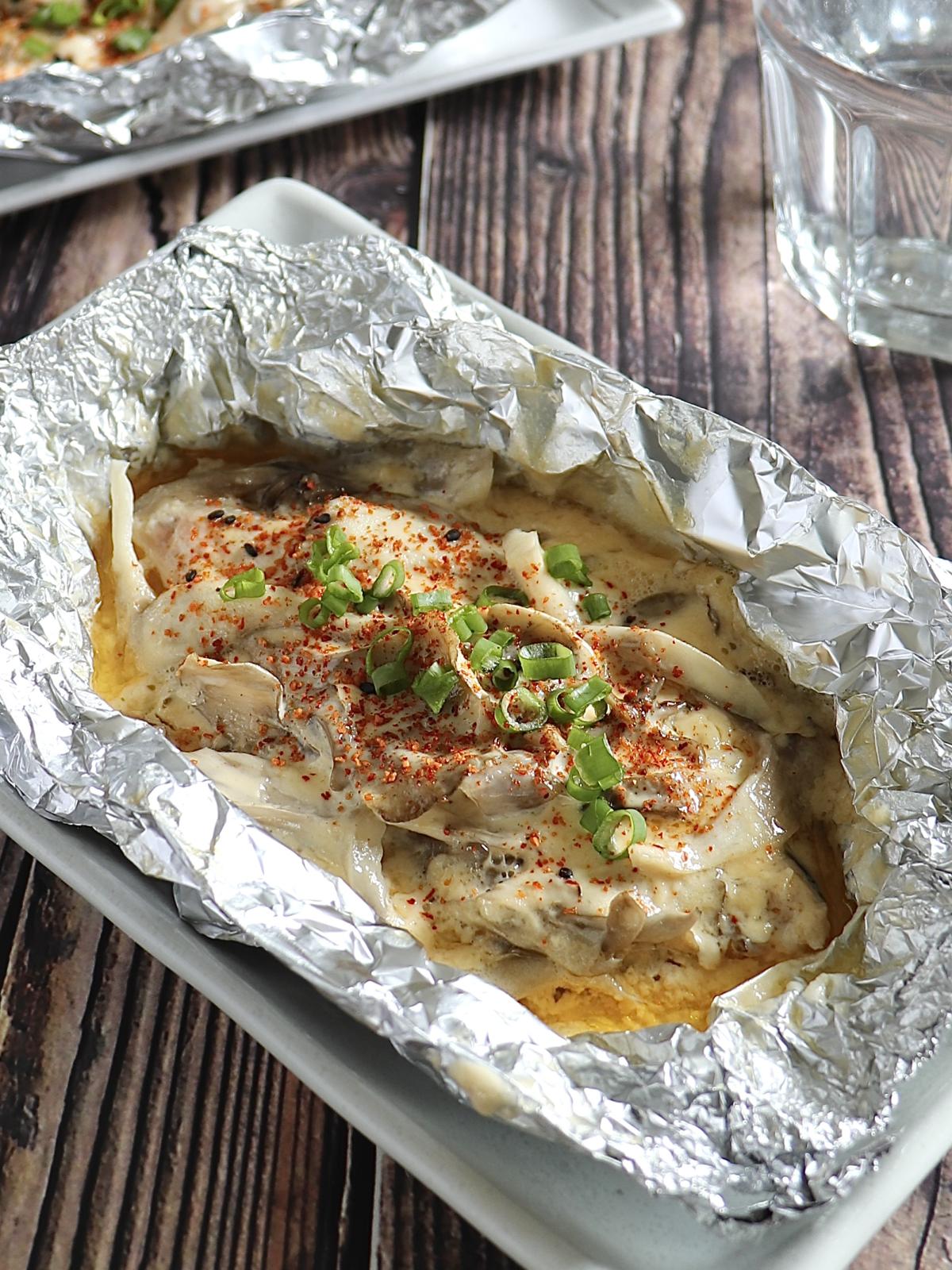 今回は、舞茸の香りと味噌マヨのコクを閉じ込めた「ホイル焼き」にしました。