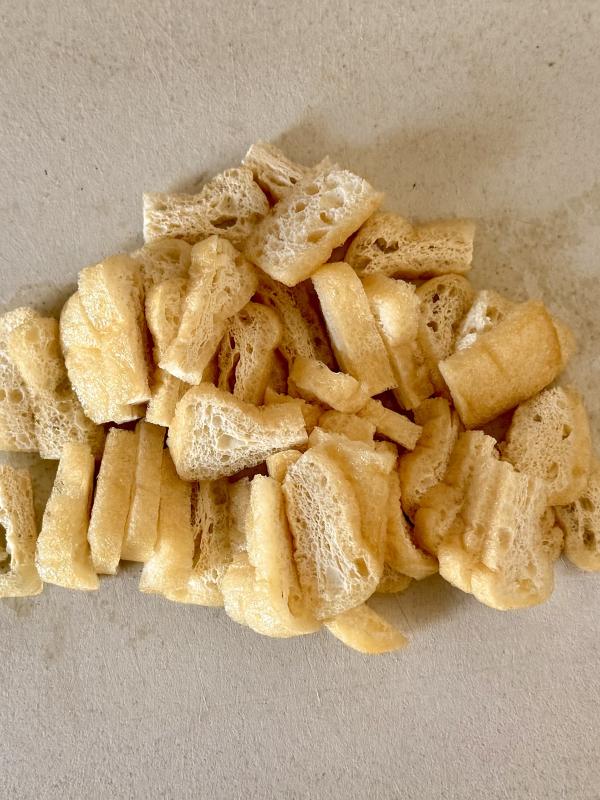 油揚げはペーパータオルで油を抜き取り、細切りにする。