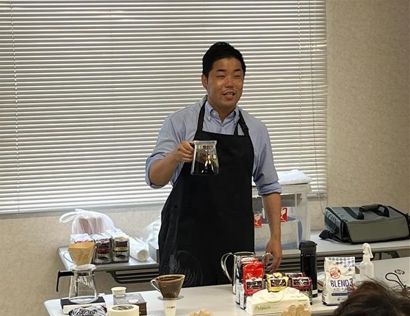 小川珈琲さんをお招きして、自宅でのおいしい珈琲の淹れ方のポイントを学びました。また、珈琲の種類についても詳しくお話していただきました。
