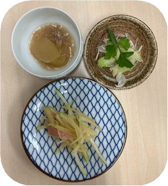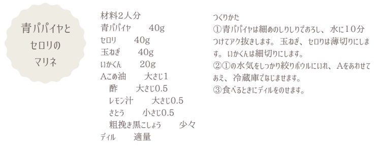 ①生で食べる 「青パパイヤとセロリのマリネ」(コリコリして食感が不思議)