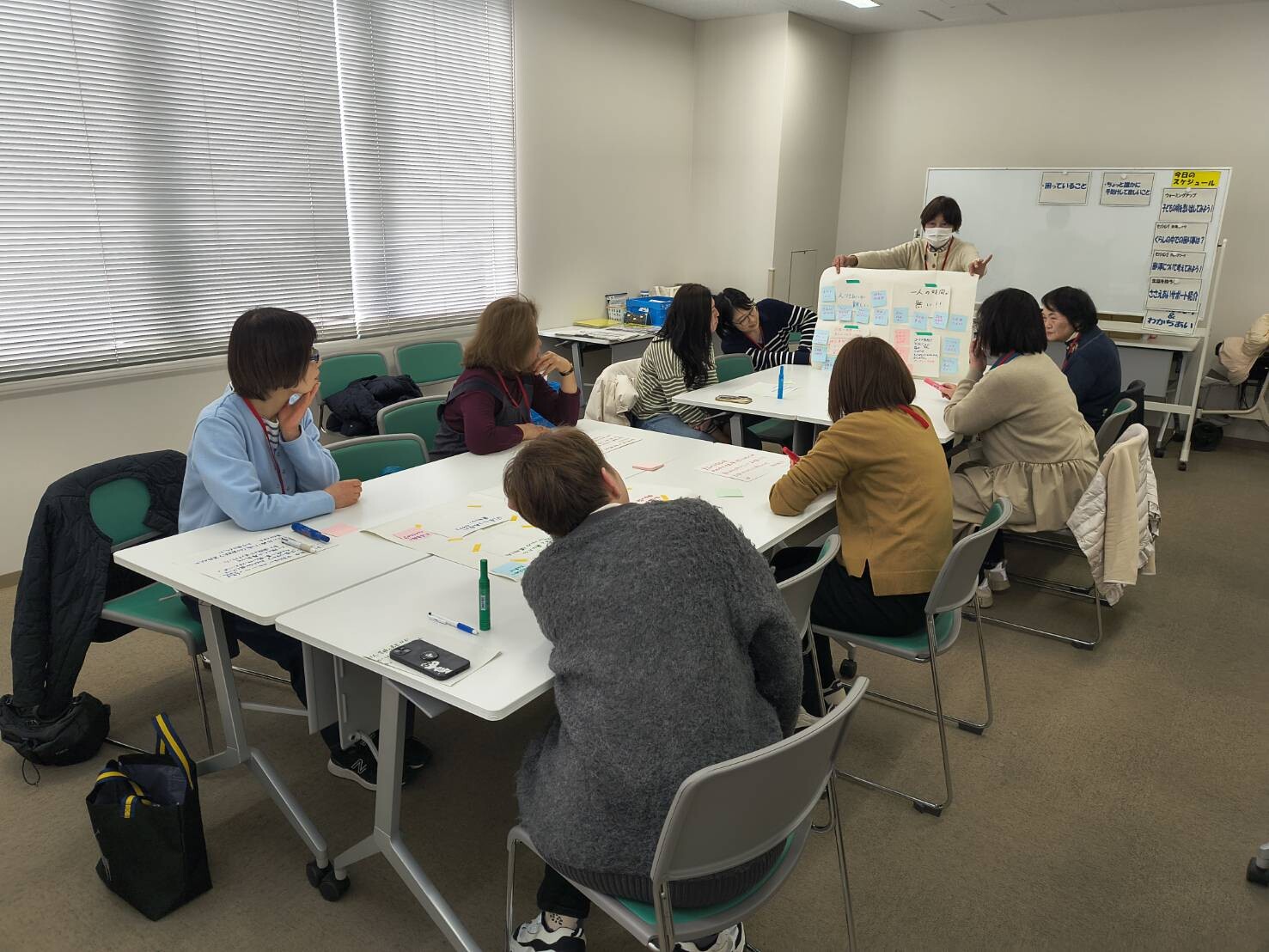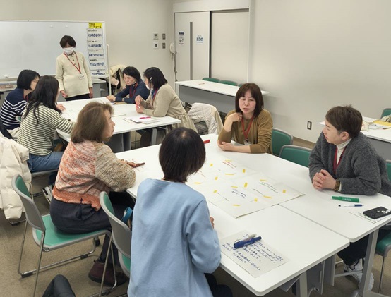 普段のくらしで困っていることを、グループ内で発表してもらいました。「子育て中で自分の時間がとれなくて困っている」「スマホの使い方がわからないのに、誰にも聞けない」などの声が聞かれました。