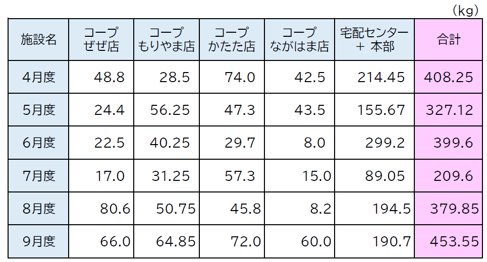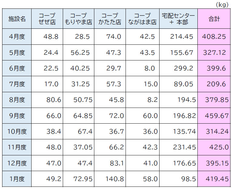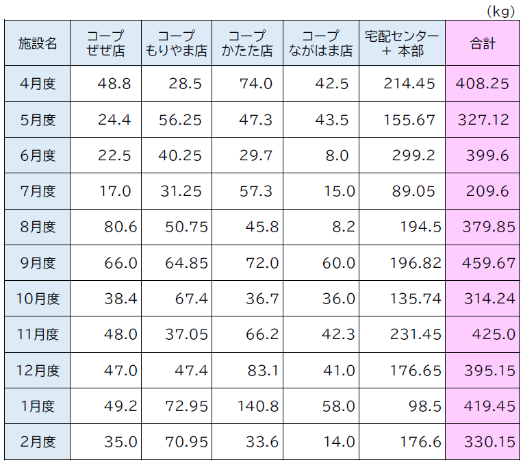 コープしがでは、組合員や地域の方々の力を借りて家庭のフードロスを減らし、フードバンクの活動を支援するために、コープのお店、宅配事業センター、一部の地域ステーションなど、県内20か所にフードBOXを設置しています。