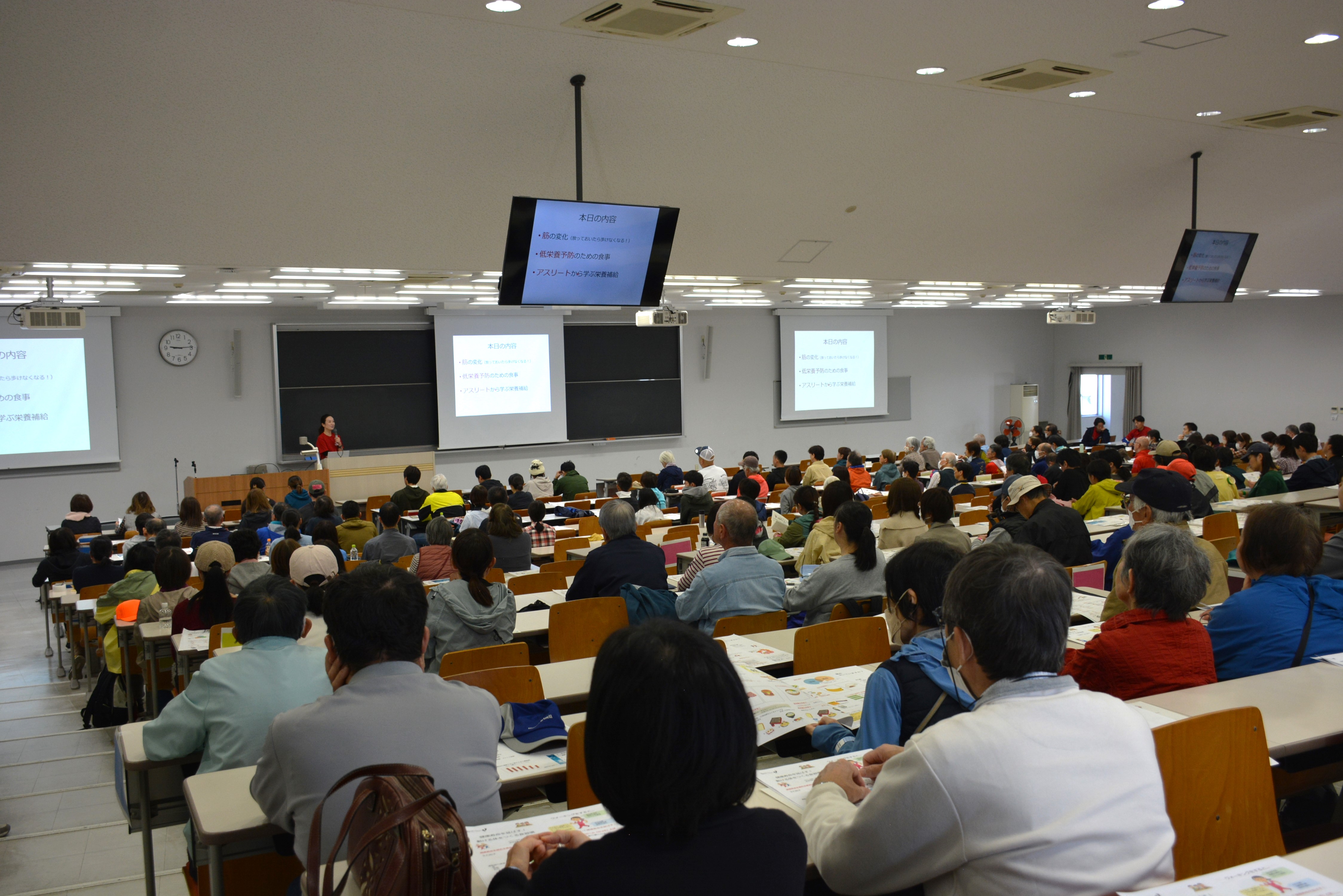 ▲参加者は、大学の講義室で、栄養やフレイル・歩き方についての講座を受けました