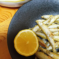 小ぶりで頭ごと一匹食べることが嬉しい。 食べ易く私たちは三杯酢で美味しく頂きました。