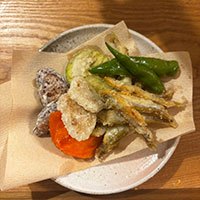 ほろにがい感じ。 少し硬さがある感じ。(揚げすぎたかもしれません。) 野菜の天ぷらばかりしたのですが、ワカサギの唐揚げをプラスして、豪華な感じになりました。