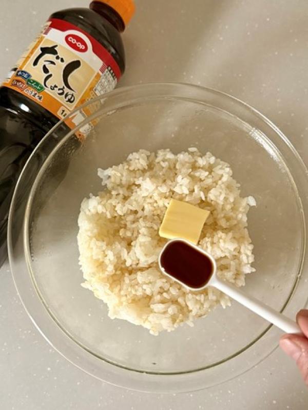 炊きたてごはんに混ぜるだけ。なのに、ちゃんと満足できるバターだし醤油おにぎり🍙