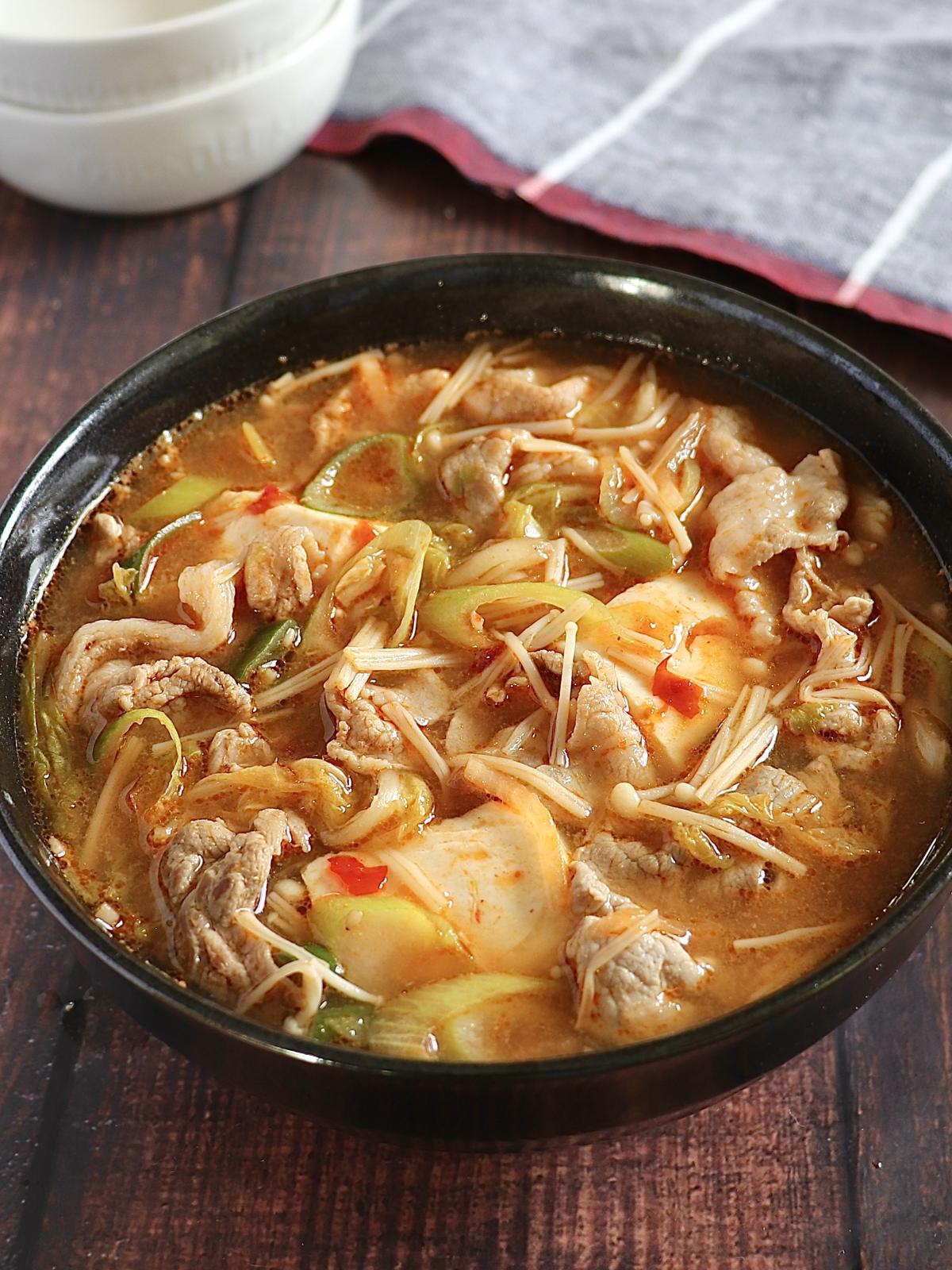 スープにするとキムチの辛さがまろやかに🥣最後まで飲み干しやすい味なので、辛いのが得意じゃない方にも◎