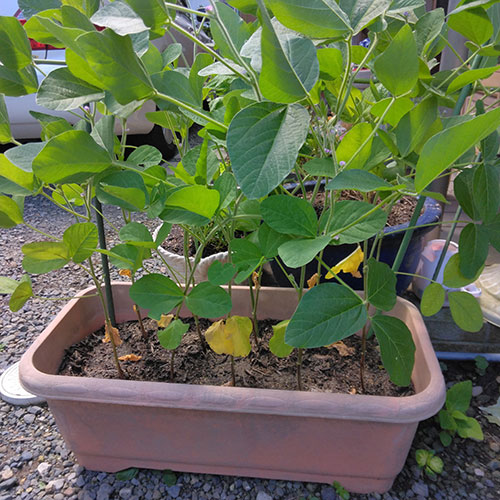 今年で3回目の挑戦。今年は肥料をやりすぎたのか、葉が生い茂りなかなか実がつかなかった。「失敗か・・・(^_^;)」と思ったが、しばらく待っていたらたくさん実がついていた。土の状態、気温、天気によっても育ち方は違う。同じようには育たないものだとつくづく感じた。だからこそ野菜作りはおもしろい??ビールがうまい時期に枝豆として食べたかったが、大豆にして美味しくいただこう??(^○^)