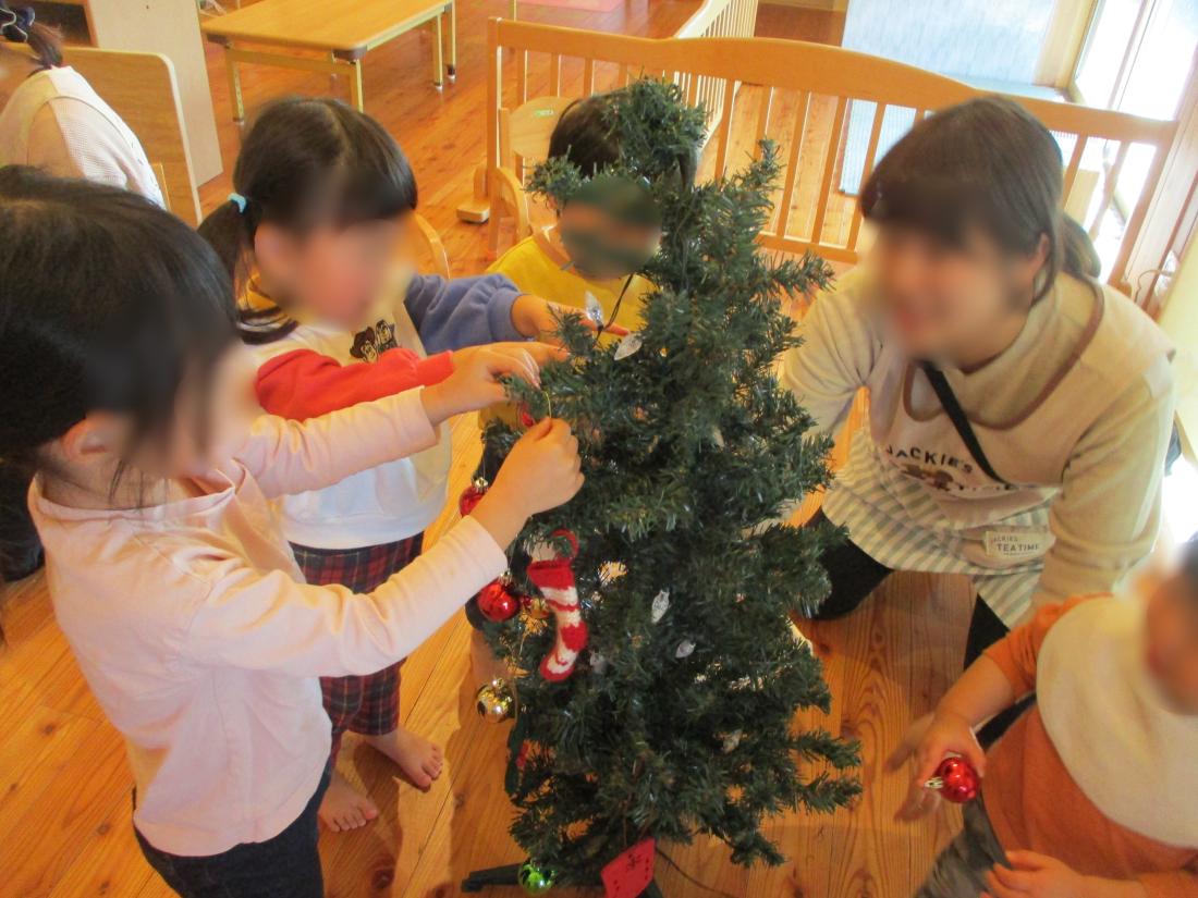 12月はクリスマスのお歌を歌ったり、クリスマスツリーの飾りつけをしたりして園内も