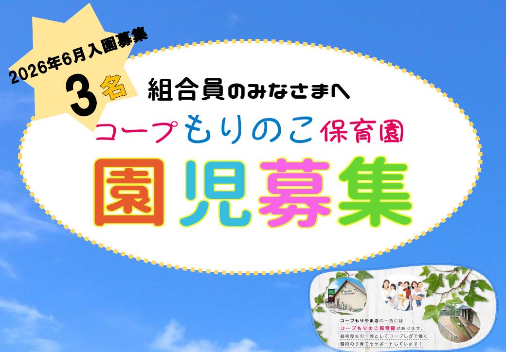 2026年6月入園の、0~2歳児の園児を3名募集しています。