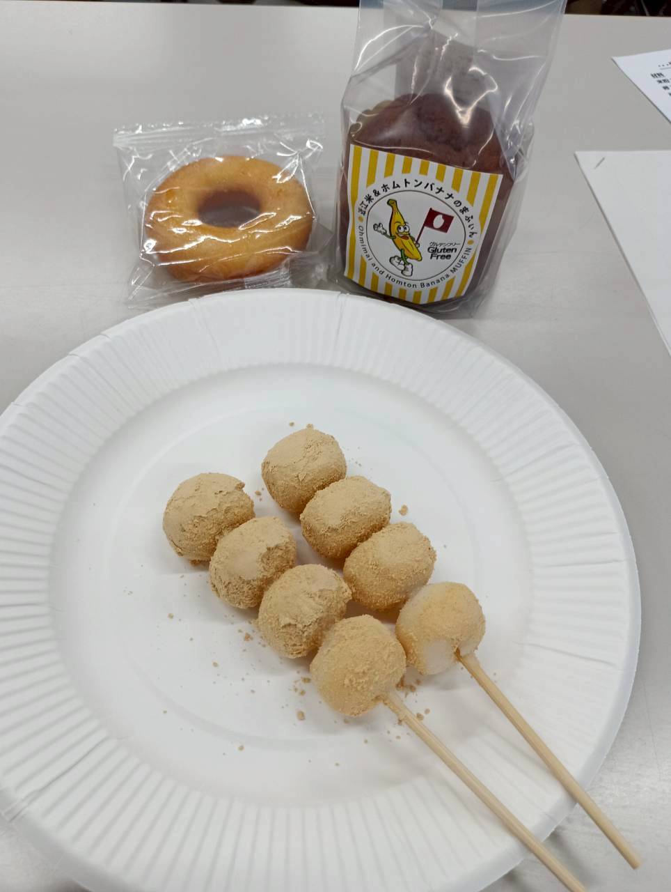 | ①米粉の学習会:パワーポイントを使ってその商品や製造方法について学ぶ。 ②米粉の実験:米粉と小麦粉の違い・米粉の種類の違い・溶かした時の比較など ③米粉商品の試食:マフィン・ドーナツ・団子など ④米粉のレシピ紹介と米粉の原料となる米の話 |