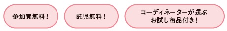 | ※託児を設けていない会場・満員で受け付けできない会場もあります。 |