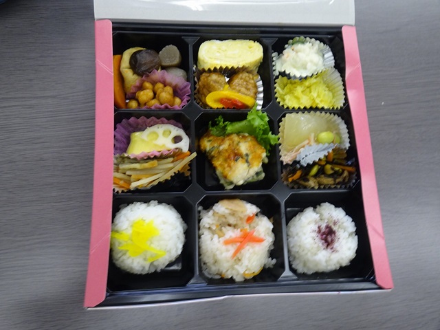 | ▲余呉湖を臨む | ▲みんなでパチリ! | ▲とちの木さんのお弁当 |