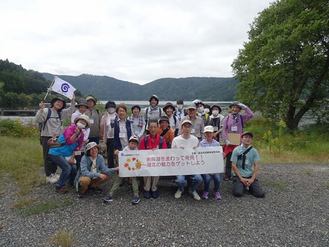 地域委員会の定例会で、湖北の魅力を考える中、自然や環境について話が出ました。また身体を動かすことも大事だと考え、余呉湖畔を歩いて余呉の自然や歴史、文化に触れたいと思い企画しました。