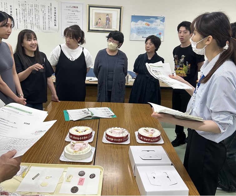 | オリジナルクリスマスケーキの開発や普及、産直商品について学び、広めます。 | 産直・県内産商品の開発や普及、これまでに開発された商品の確認などに関わります。 |
