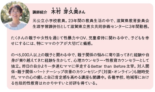 性やジェンダー、境界線について、大人がともに学ぶ講座です。子どもにどう伝えるかを心理学の視点も交え、発達段階に応じて考えます。沈黙ではなく対話を学ぶ一歩に。