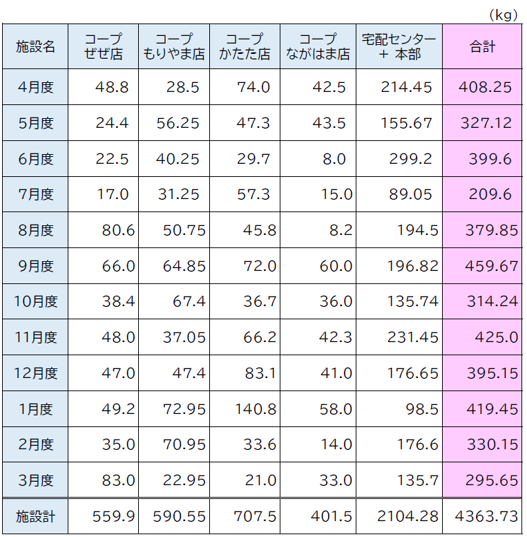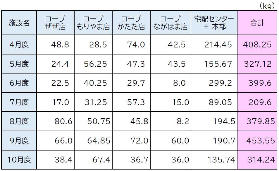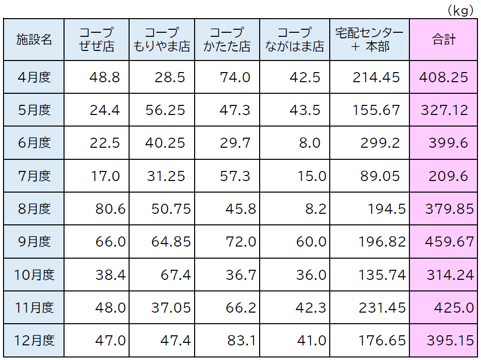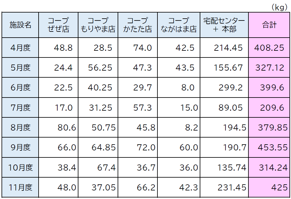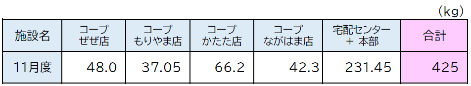 コープしがでは、組合員や地域の方々の力を借りて家庭のフードロスを減らし、フードバンクの活動を支援するために、コープのお店、宅配事業センター、一部の地域ステーションなど、県内20か所にフードBOXを設置しています。