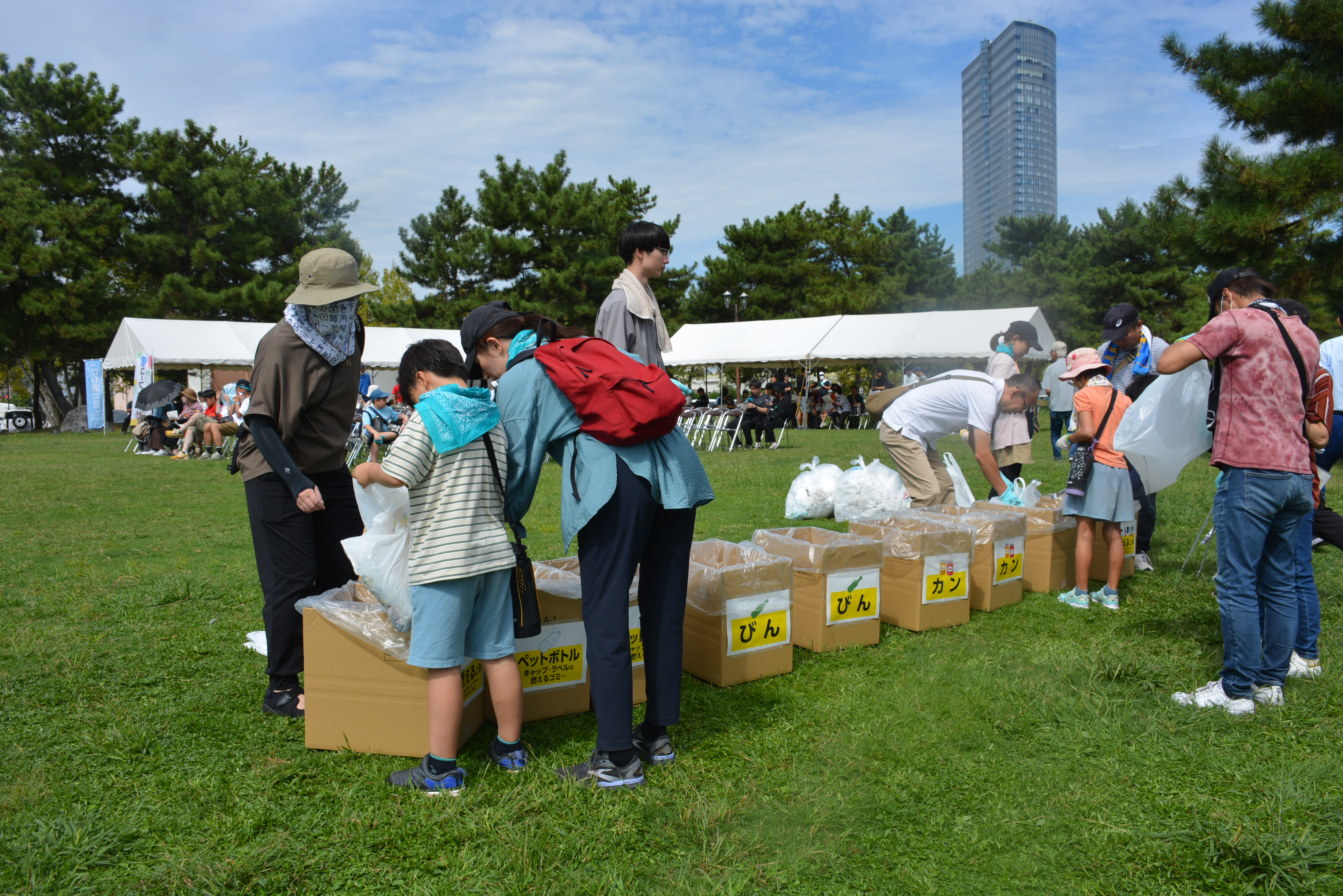 サンシャインビーチの特設会場を中心に、LAGO大津から膳所城跡公園までのコースをゴミを拾いながら歩きました。組合員・役職員・県民のみなさんなど約300名が参加。おそろいのバンダナをつけ、びわ湖をそばに感じながら清掃ウォークを行いました。