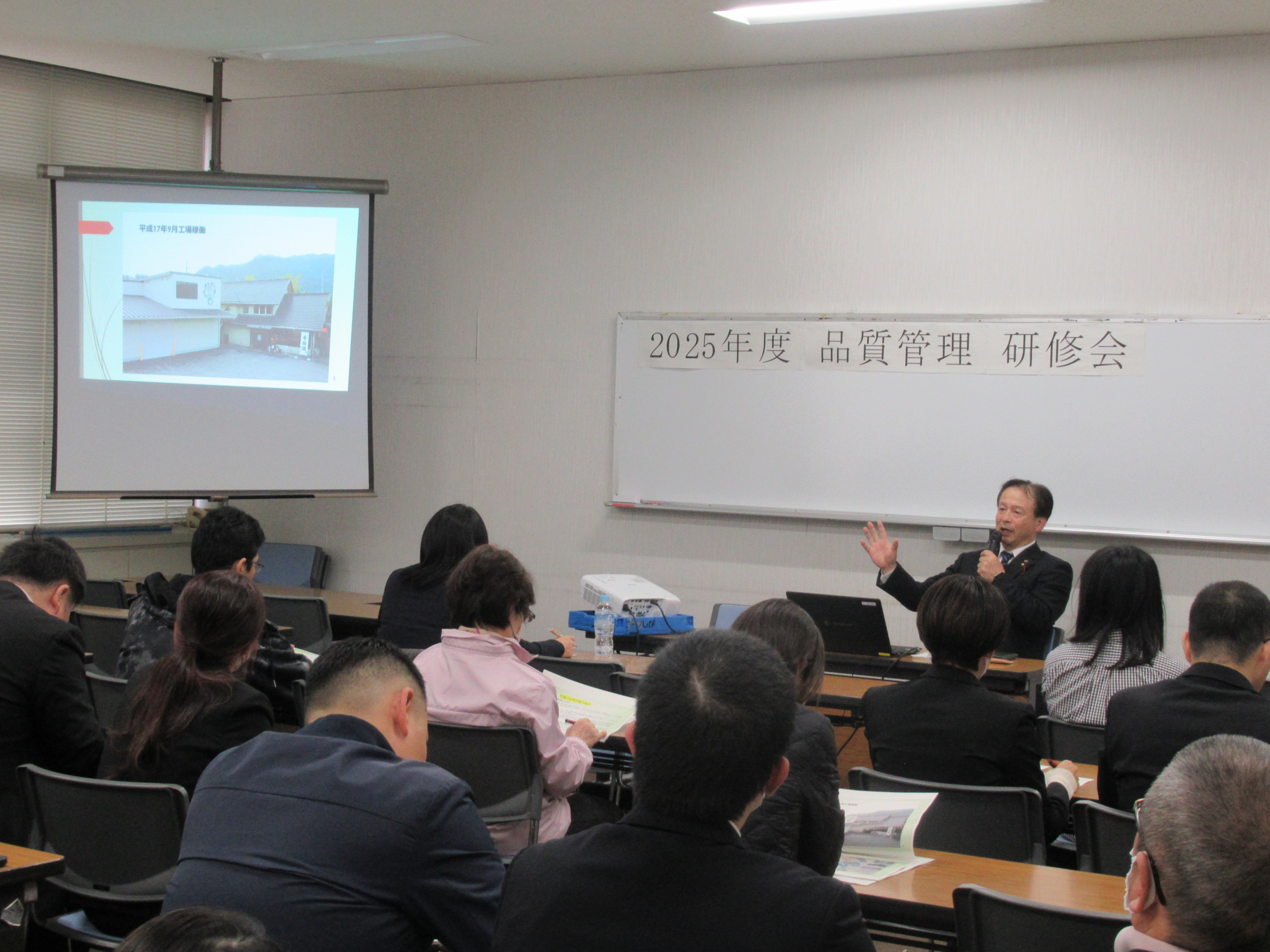 2020年6月より、食品を扱うすべての事業者に対し、HACCPに基づく衛生管理の実施が義務化されています。HACCPとは、原料入荷から製品出荷までの全工程で、食中毒や異物混入といった危害要因を特定し、これらを効果的に排除・軽減することで、製品の安全性を高める仕組みです。毎年、衛生管理の向上を目指して県内取引先様を中心に研修会を開催しています。