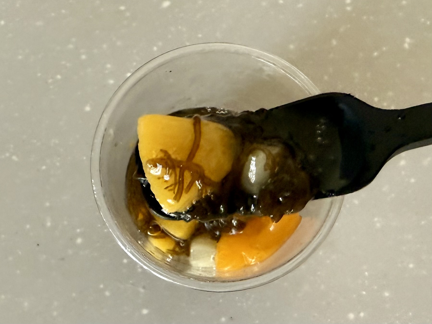 〇沖縄県恩納村のサンゴが育てた太もずくシークヮーサーを使用した「フルーツカクテル」