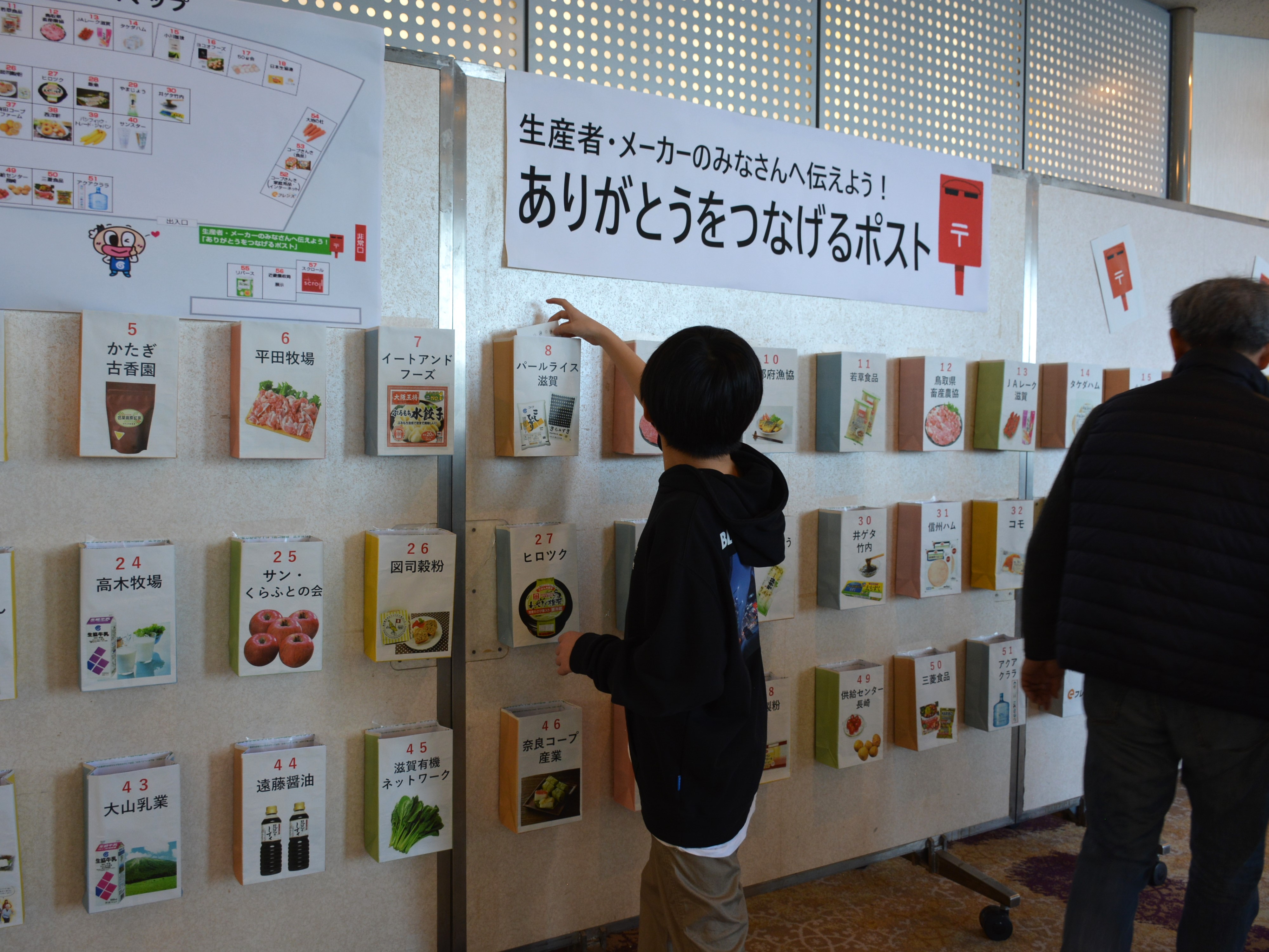 今回の商品大交流会は、「つながる」「笑顔」の2つをキーワードに、試食や交流をメインに行い、商品を通して、組合員と生産者がつながることのできるイベントとなりました。また、交流会を楽しんだ後に、生産者・メーカーのみなさんへのメッセージを投函する「ありがとうをつなげるポスト」を設置しました。参加組合員から、ブースでは伝えきれなかったメッセージや応援コメントをお寄せいただきました。