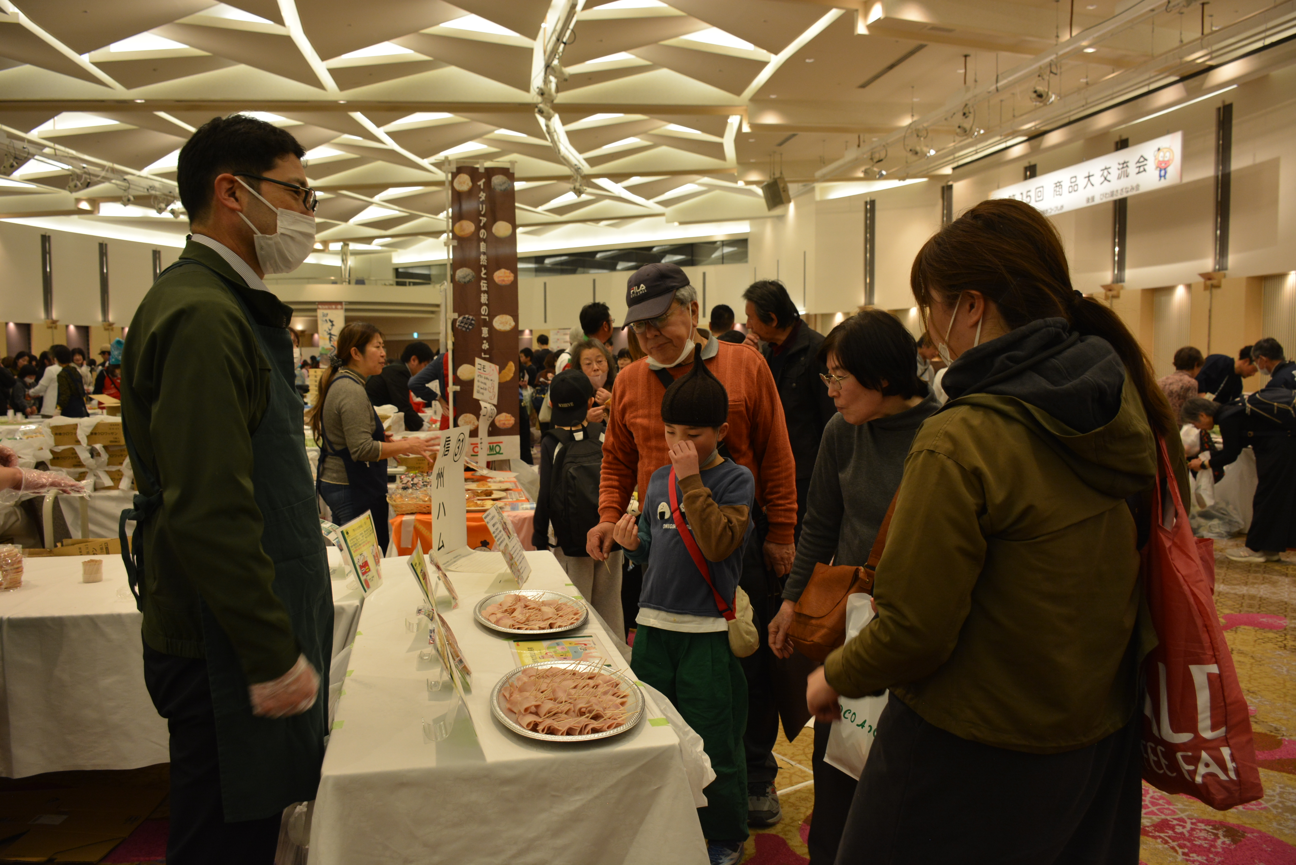 2月21日(土)びわ湖大津プリンスホテル(大津市)にて、2025年度の商品大交流会を開催しました。産直・県内産地の生産者・メーカーを中心に、日本生協連合会・コープきんき(CO・OP商品)やコープしがの産直・県内商品普及委員会・商品開発検討委員会など、57のブースが出展。1,000名を超える組合員と役職員が、午前・午後の2部に分かれて、商品を通した交流を楽しみました。