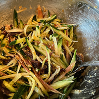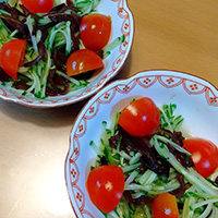 さっと茹でて冷やし、お刺身こんにゃくと共に酢味噌でいただきました。暑い日だったので、サッパリして口当たりが良く、美味しくいただきました。家族にも好評でした。