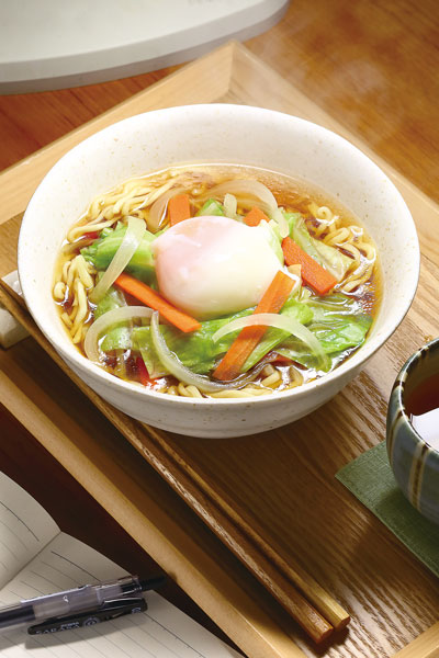 野菜でカサが増し、摂取カロリーを抑えられます。またしっかり咀嚼することで満足感が上がり、ゆっくり食べることでお腹が膨れて食事量を減らすことができます。例えば、同じカロリーでも、炭水化物と脂肪しか栄養のない即席袋ラーメンではなく、麺を半分にして野菜たっぷりでカサ増しし、卵1個落としたラーメンを。